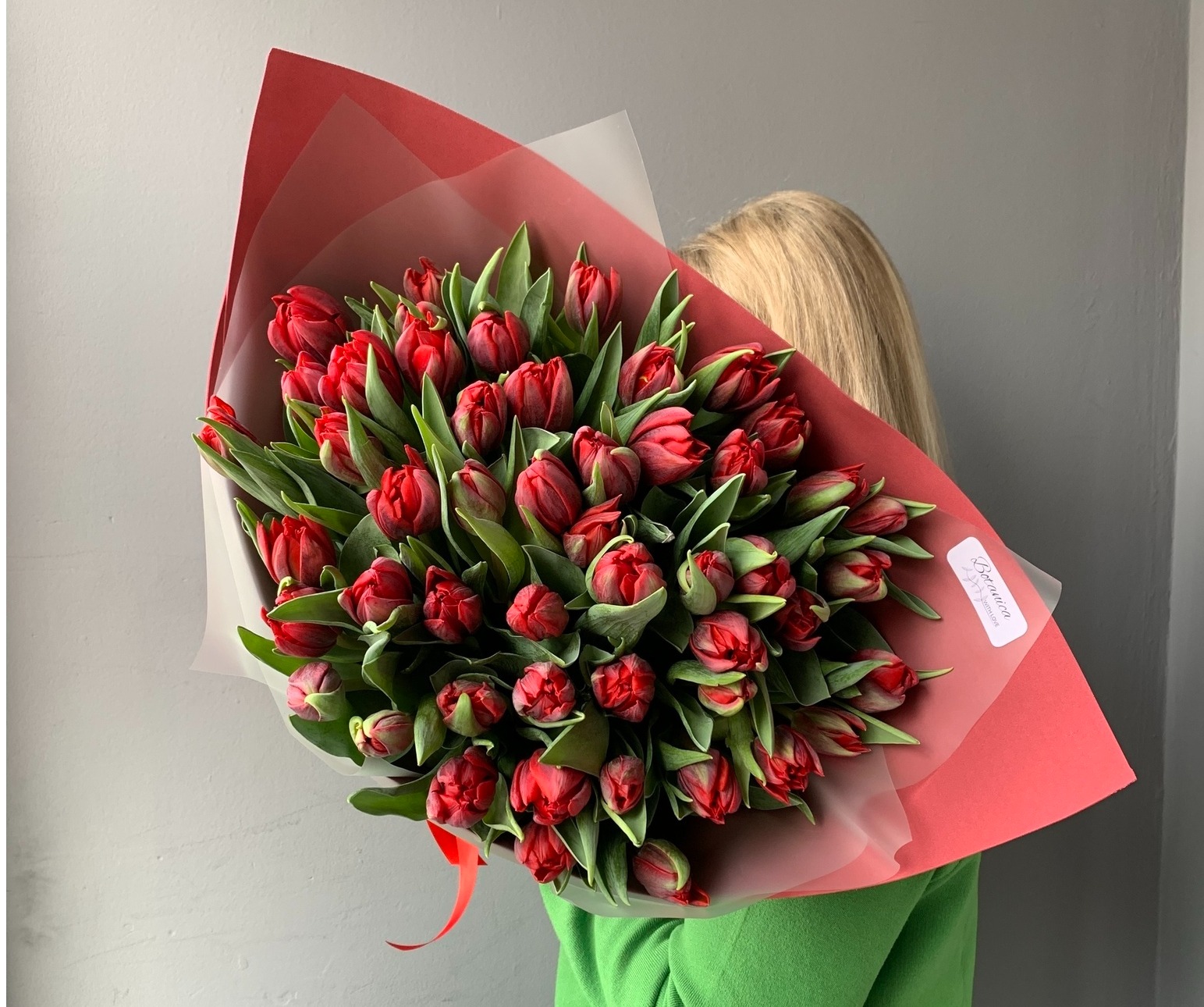 Букет из 51 красного пионовидного тюльпана