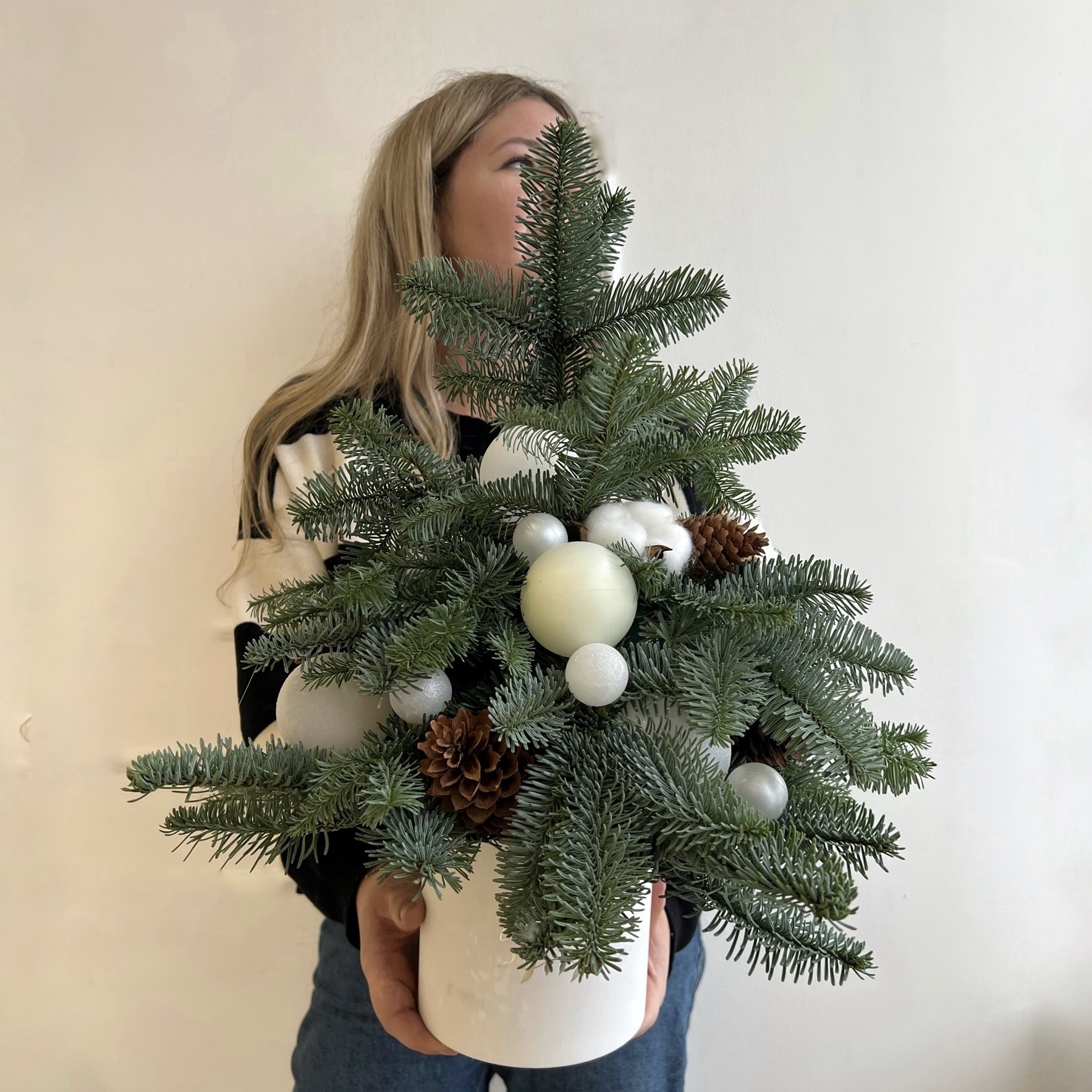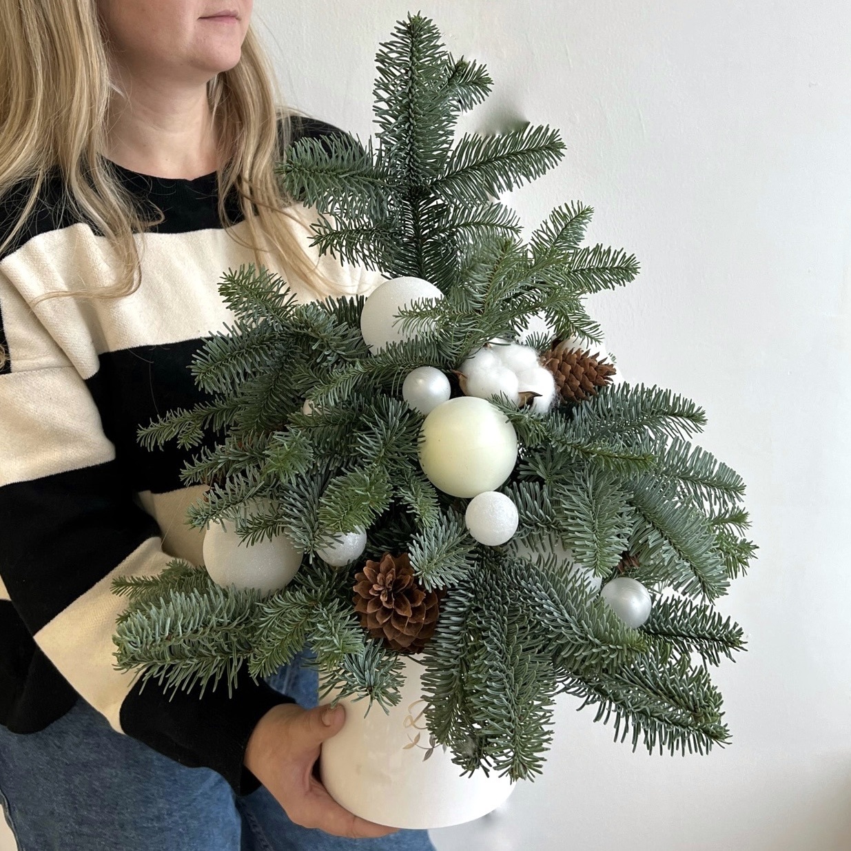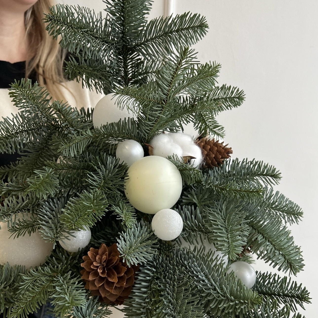 Состав: нобилис, украшения елочные, оазис флористической, коробка шляпная